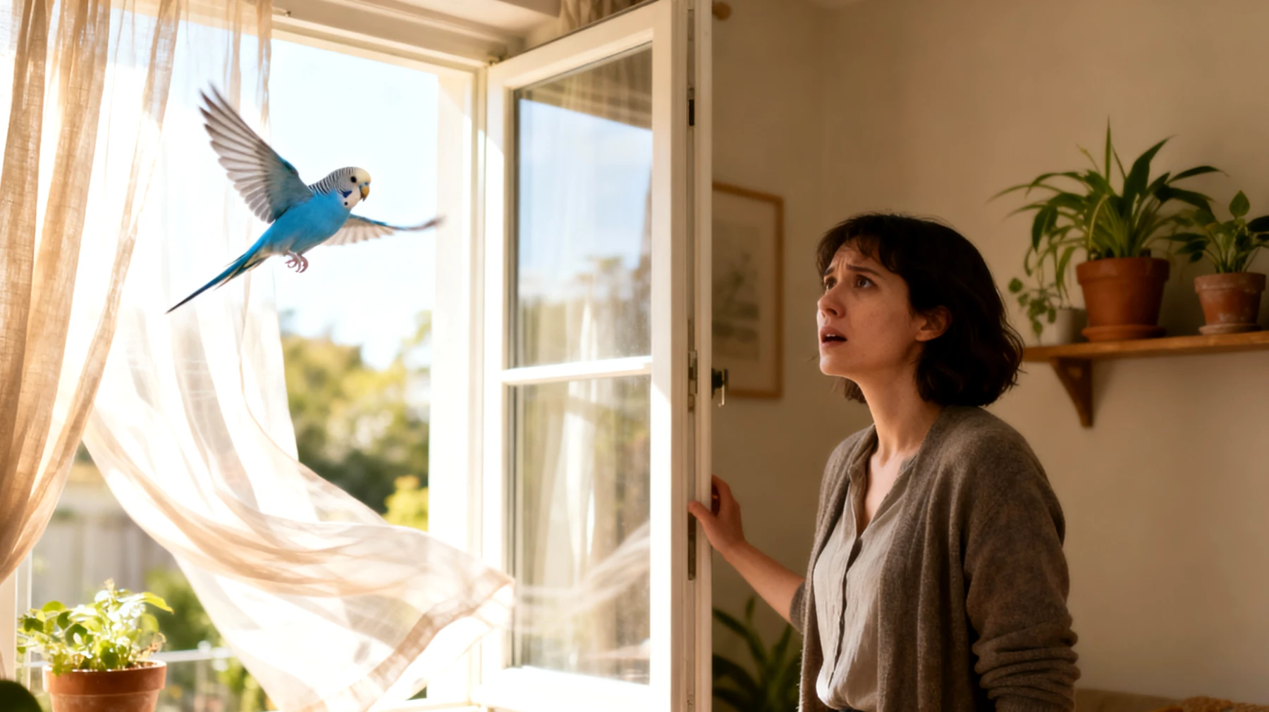 Die wohl häufigste Todesursache bei freifliegenden Wellensittichen ist das versehentliche Entkommen durch geöffnete Fenster oder Türen. Ein Moment der Unachtsamkeit genügt, und der Vogel ist für immer verschwunden. In der freien Natur haben domestizierte Wellensittiche kaum Überlebenschancen – sie kennen weder Raubtiere noch natürliche Futterquellen und sind den klimatischen Bedingungen Mitteleuropas nicht gewachsen. Vor jedem Freiflug müssen sämtliche Fenster und Außentüren geschlossen werden. Fliegengitter bieten einen zusätzlichen Schutz, sollten aber stabil und für Vögel sichtbar gemacht werden.
